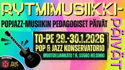 Popjazz-musiikin pedagogiset Rytmimusiikkipäivät järjestetään Pop & Jazz Konservatoriolla 29.-30.1.2026. Rytmimusiikkipäivät on suunnattu musiikkioppilaitosten opettajille, opiskelijoille ja hallintohenkilöstölle. Rytmimusiikkipäivät järjestävät Keski-karjalan Musiikkiopisto ja Pop & Jazz Konservatorio. Osallistuminen maksaa 19.12.2025 mennessä ilmoittautuneille 50 €/hlö ja sen …