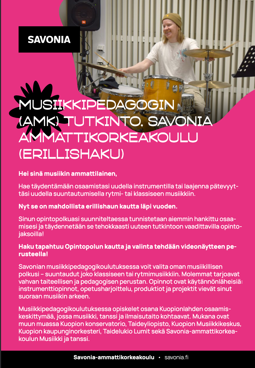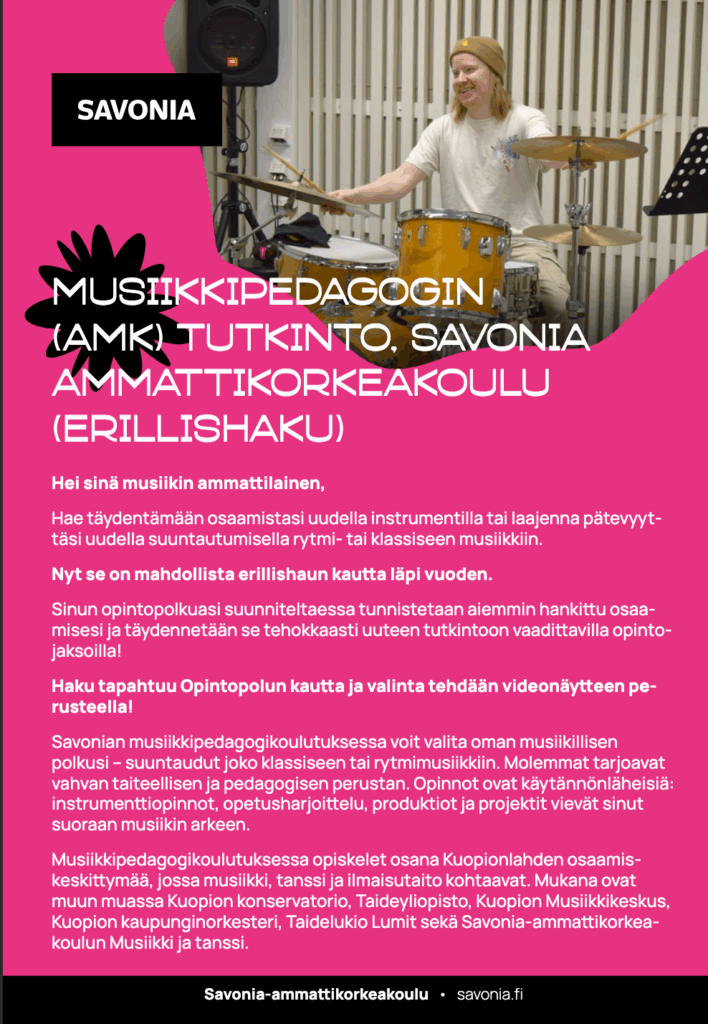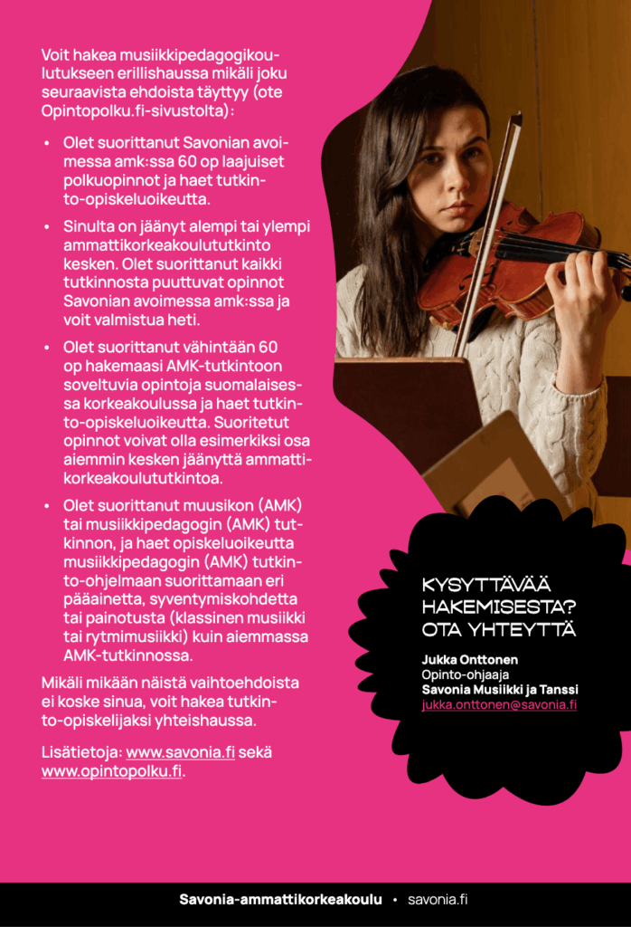 Musiikkipedagogin (AMK) tutkinto, Savonia ammattikorkeakoulu (erillishaku)