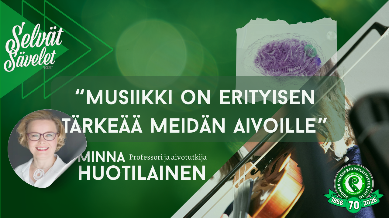 Tässä Selvät sävelet -jaksossa keskitymme musiikin rooliin aivojen kehityksessä yhdessä aivotutkija, professori Minna Huotilaisen kanssa. Keskustelun keskiössä ovat musiikin ja erityisesti musiikkileikkikoulun eli muskarin vaikutukset lapsen aivoihin ja henkiseen hyvinvointiin.